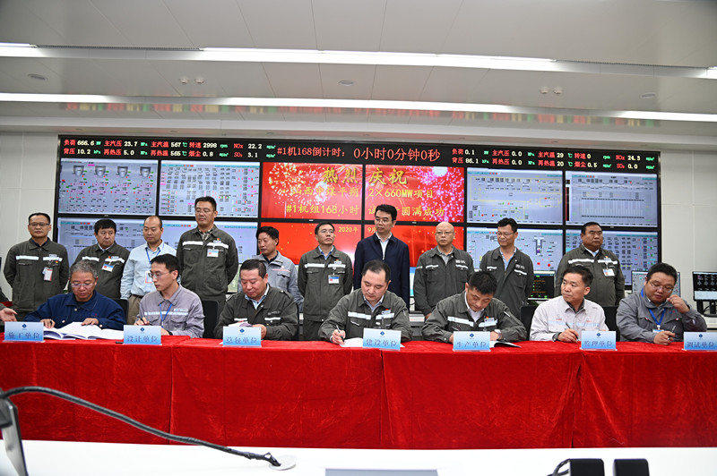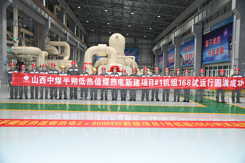 2020年9月16日0时0分,中煤平朔第一煤矸石发电有限公司2×660MW低热值煤热电新建项目#1机组圆满完成168小时满负荷试运行。机组168小时试运行期间,完成发电量1.07亿千瓦时,平均负荷630MW,负荷率96.6%,满负荷试运质量满足《火力发电建设工程机组调试质量验收评价规程》要求。苏晋能源控股有限公司、华北电力设计院、山东诚信工程建设监理有限公司、西北电力试验研究院有限公司、中国东方电气集团东方锅炉厂股份有限公司、东方电机有限公司等多家单位到场,或以贺信贺电方式对#1机组168小时试运行成功表示祝贺。