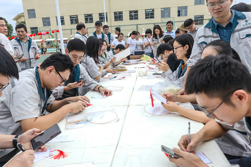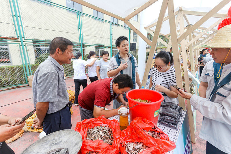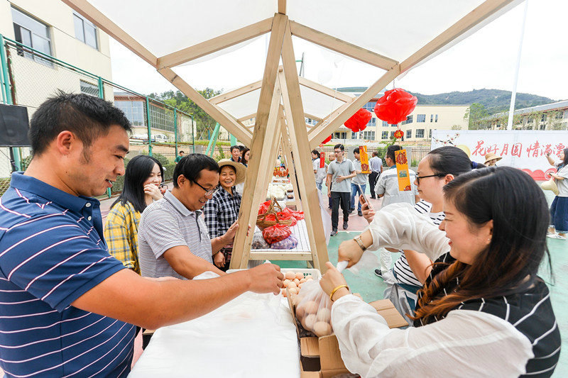 下午,中秋集市准时在溧电公司开市,吴村村民将丰收的板栗、蔬菜,亲手养殖的鸡鸭、活鱼,传统手艺制作的笋干、竹篮、腐乳等30余个品种的近1000余件商品带到了中秋集市上,供溧电公司员工选购。经过1.5小时的售卖、采购,累计成交金额近2万元。公司全体员工还与吴村村民一起品尝了美味的月饼,在中秋寄语卡上写下了美好祝福。