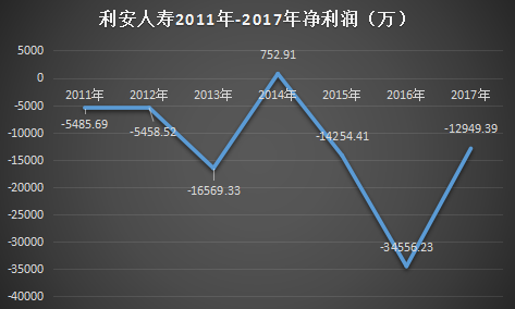 具体来看,报告显示,截止2018年2季度末,利安人寿亏损情况延续,上半年共计亏损893.9万元。事实上,自2011年设立以来,利安人寿7年6亏,除2014年实现752.9万元盈利外,其余年度均亏损严重,其中2016年亏损3.46亿元,2017年亏损情况虽有所缓和,但也出现1.29亿元净亏损。